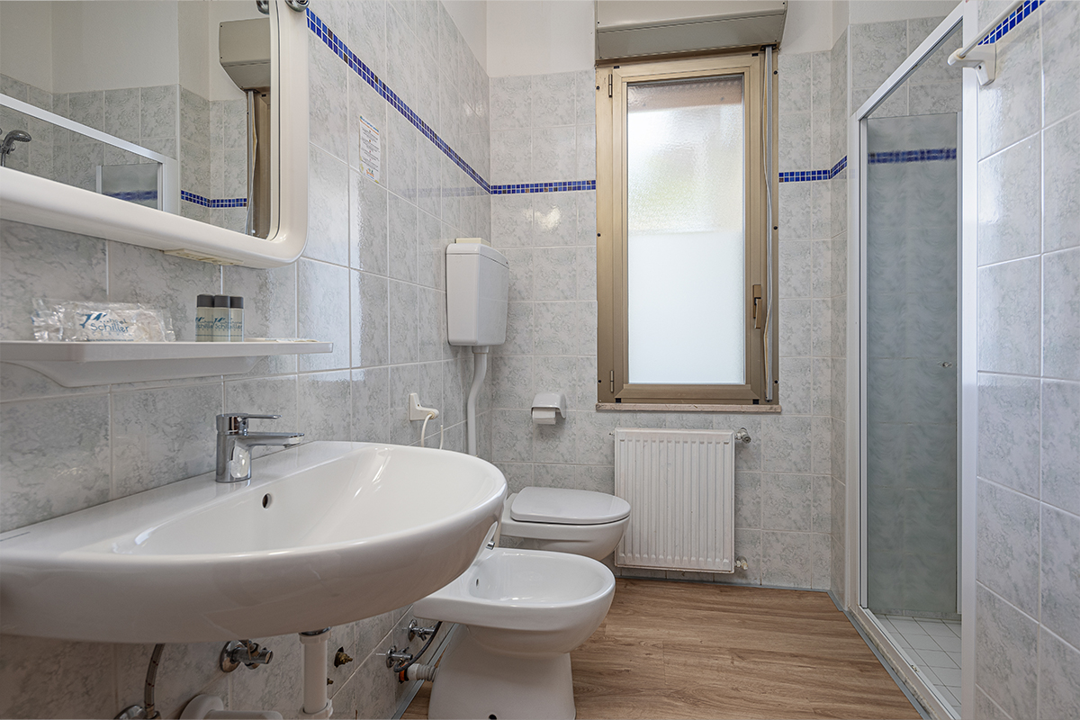 • 1 camera matrimoniale più un letto adulto e un letto di 160 cm (Tot. 18 mq), aria condizionata, balcone, TV, cassetta di sicurezza, bagno con finestra (4 mq), box doccia e phon, connessione Wi-Fi gratuita.